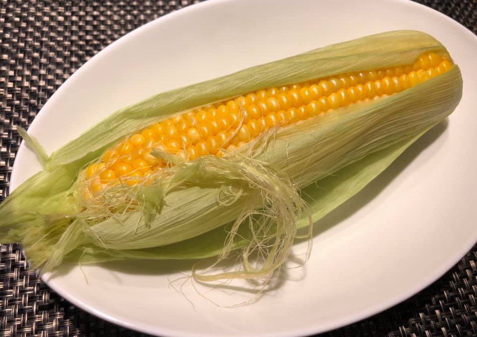 朝から出かけて帰ったら尾崎桃太郎のトウモロコシがついていた、急いで皮付きでチンして、一口大カット。これからレッスン3時間のおやつに(*^o^*)💕🌸バックの中で、ホカホカいい匂いがしてます😆💕