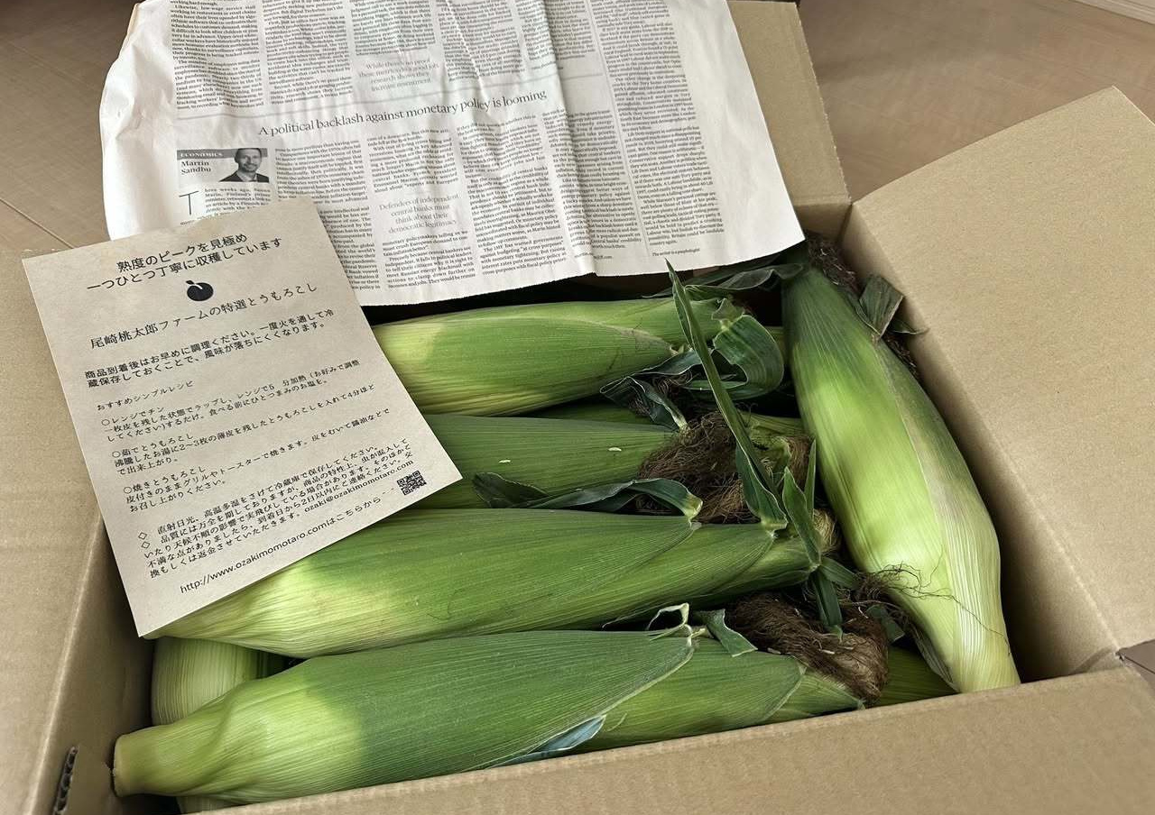 尾崎桃太郎ファームから楽しみにしてたスイートコーン『きみひめ』が届きました*\(^o^)/*ちょー甘くて美味しいー!ひとりで2本ペロリ