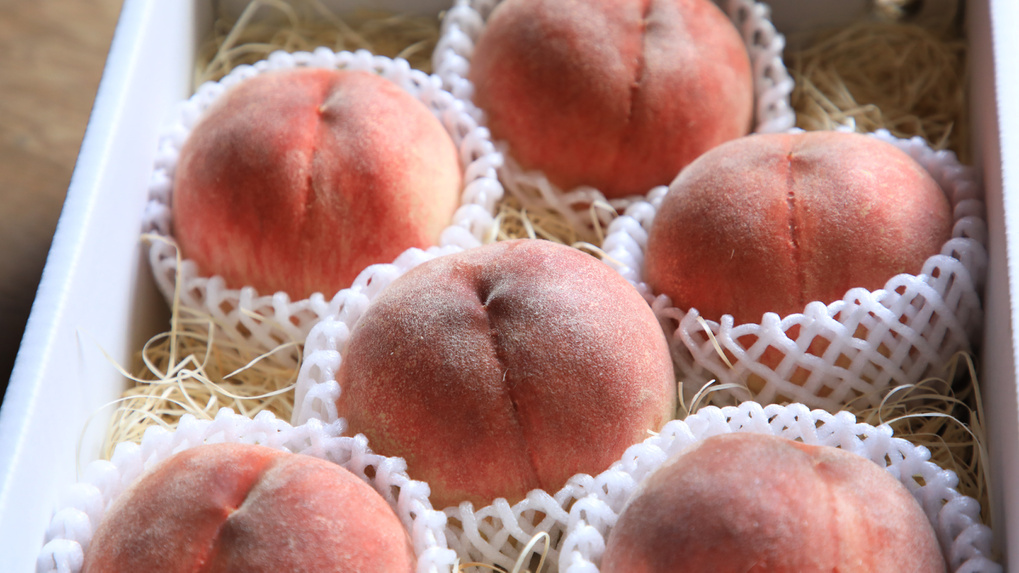 ※ キロ(kg)数は箱の規格を指しており、桃の総重量とは異なります。内容の目安は、2kg箱入り6〜7個、3kg箱入り9〜12個、5kg箱入り12〜15個です。