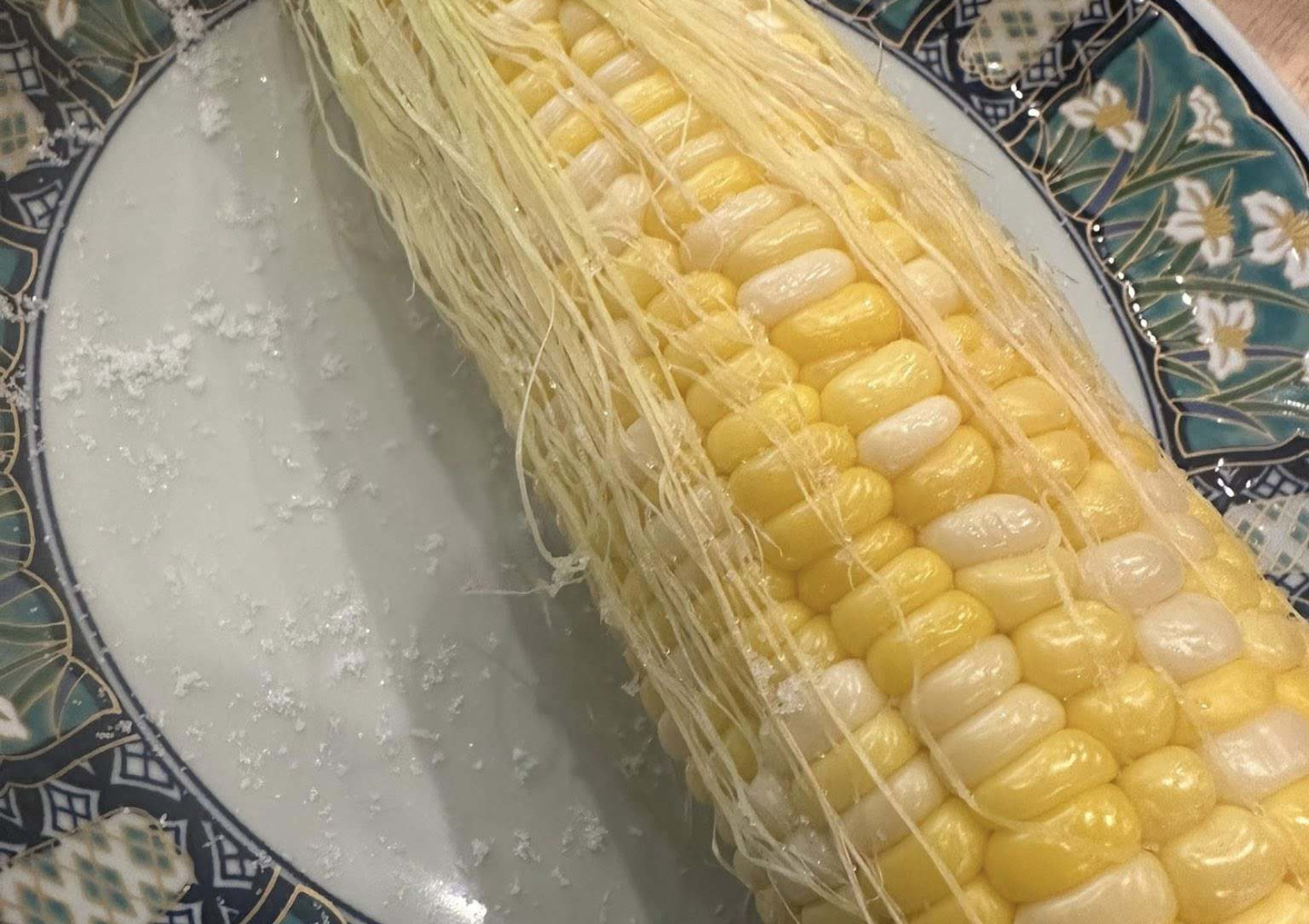 朝から出かけて帰ったら尾崎桃太郎のトウモロコシがついていた、急いで皮付きでチンして、一口大カット。これからレッスン3時間のおやつに(*^o^*)💕🌸バックの中で、ホカホカいい匂いがしてます😆💕