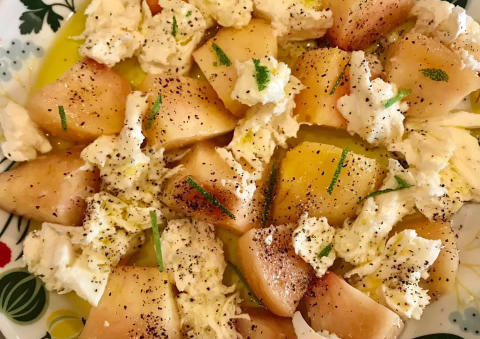尾崎桃太郎ファームの激ウマみさか白鳳で桃モッツァ❤️すごく香りもよくて味も濃いからフルーツサラダにしても激ウマ❣️❣️