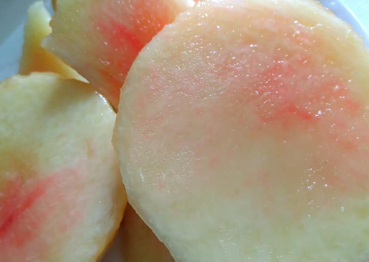 全部みずみずしくて、とても甘くてパーフェクト‼️たくさんあるので途中妥協して冷蔵庫へ入れないといけないだろうと思っていたのですが、常温でもシッカリ耐えてくれた新鮮で感動の桃でした。私は大根みたいな桃が苦手なので、冷蔵庫に入れないで涼しいところに常温保存しておいて、甘い香りが強くなった頃合いを見計らって食べます。今回送ってもらったみさか白鳳は全部皮がツルーッと簡単に剥ける、とても甘くて美味しい桃でした❤️無事に全部美味しく自分好みの状態で完食できそうです♪ヽ(*´∇`*)ノ